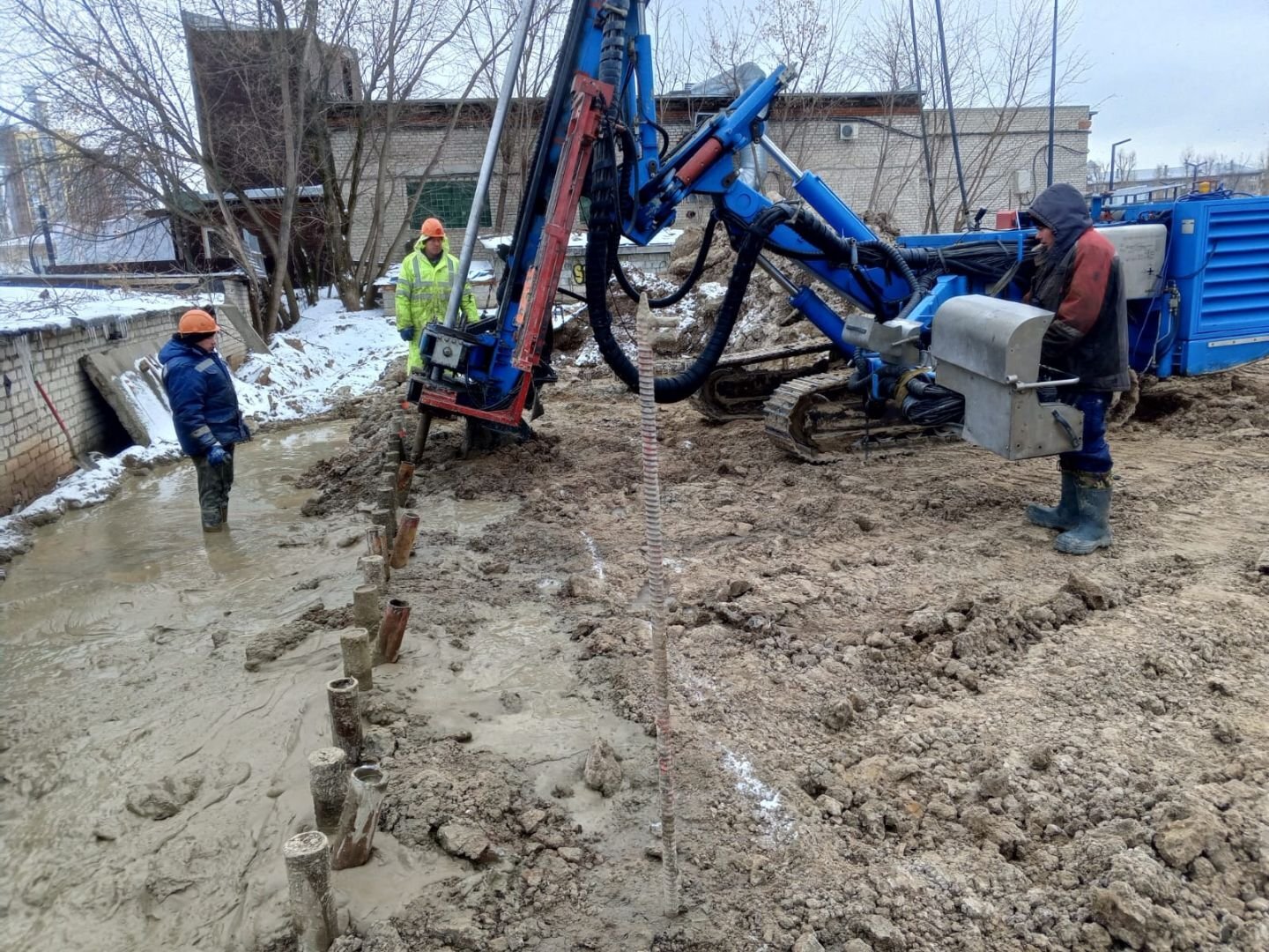 Произвели укрепление основания сооружений комбината.
